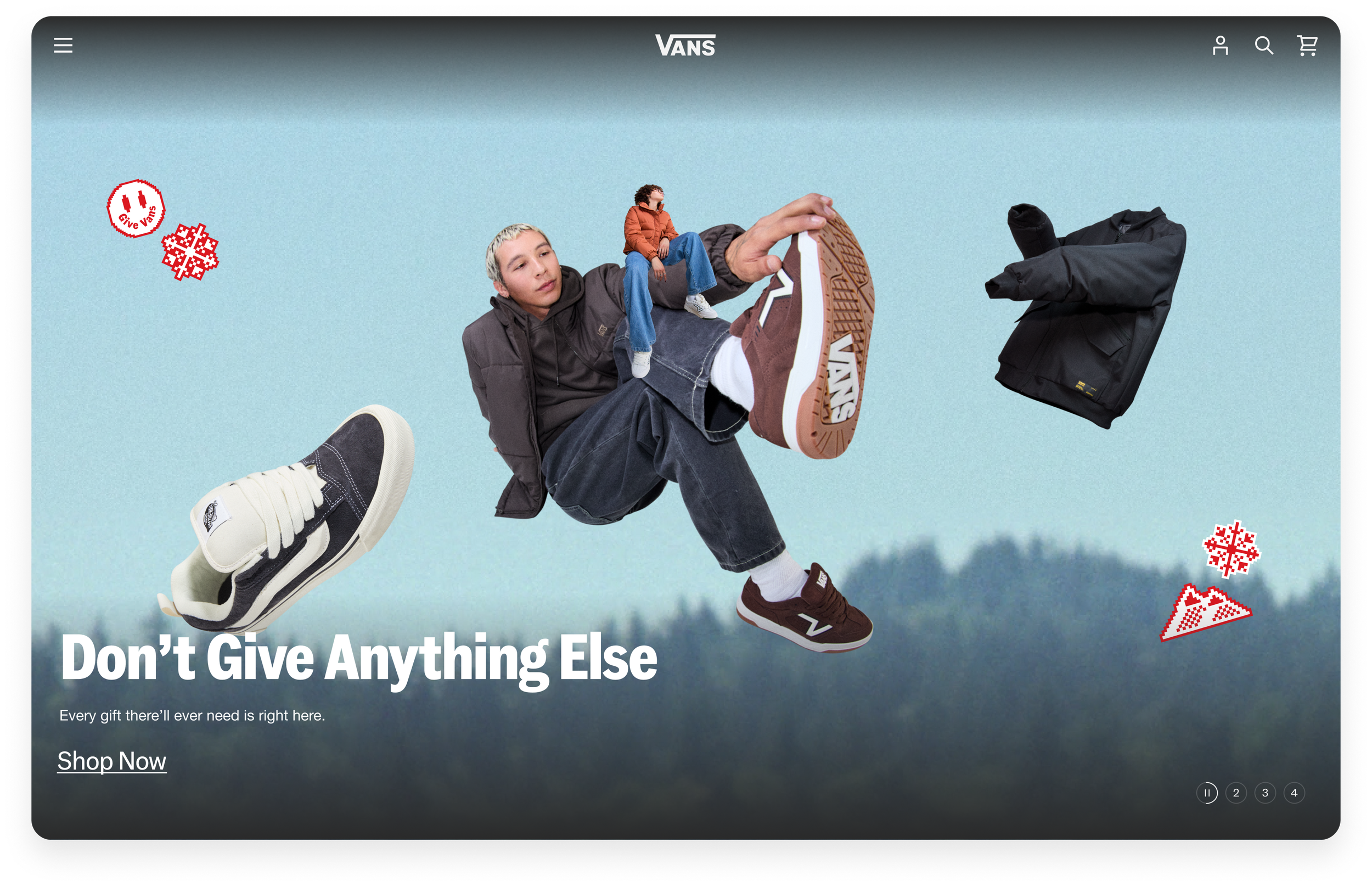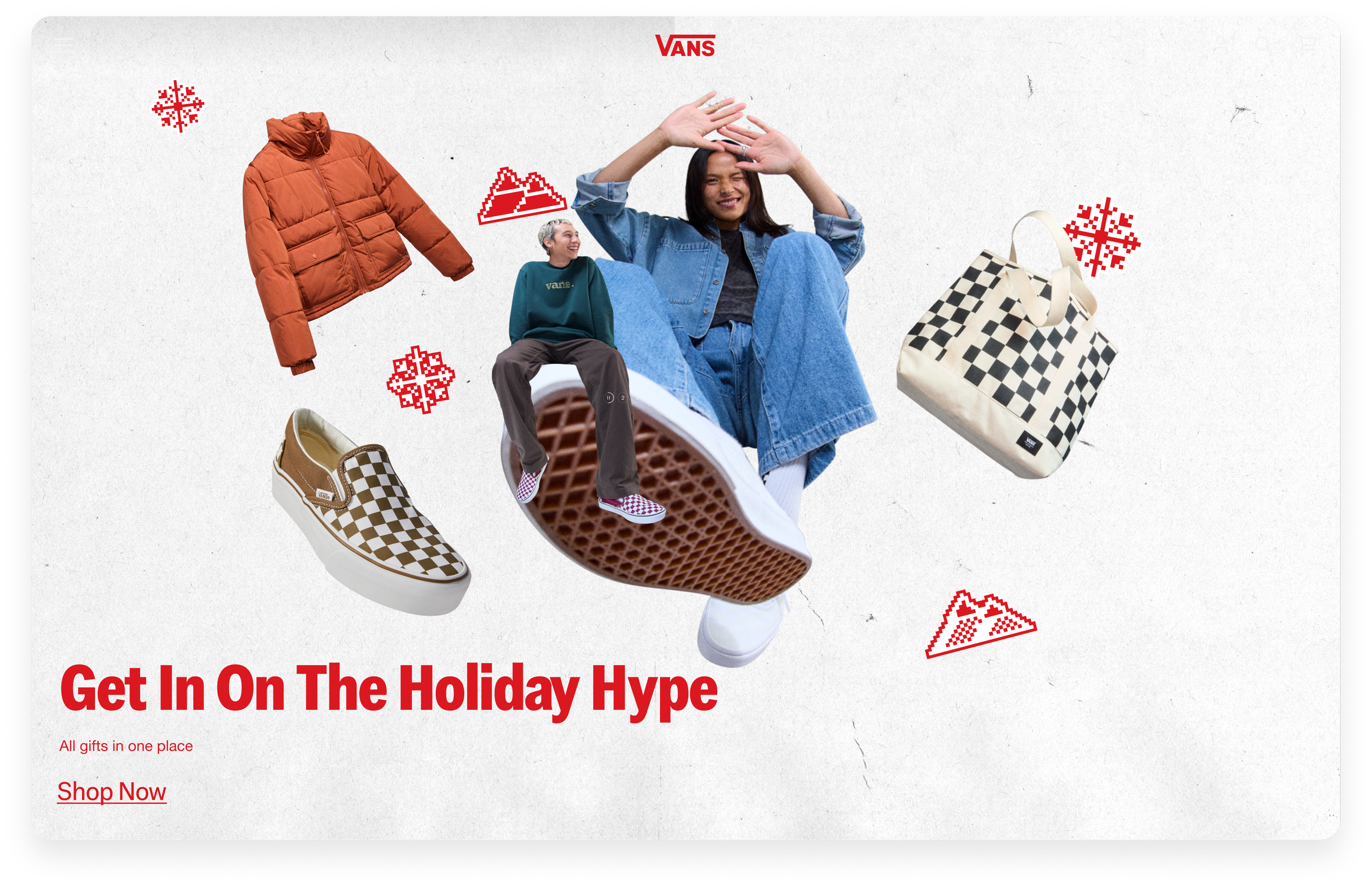 With the holiday season being the most competitive window of the year, Vans needed a campaign that positioned us as the ultimate one-stop shop for every creator on the list. The goal was to simplify the gifting experience by housing everything—from iconic classics to seasonal accessories—in one cohesive digital destination, making it effortless for consumers to get all their shopping done in one place.